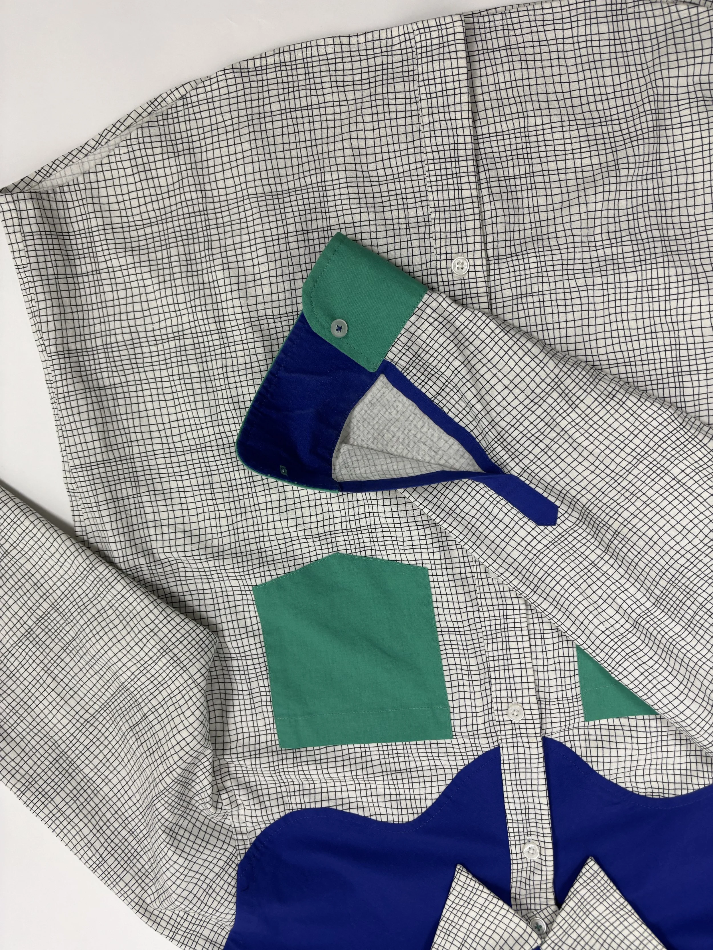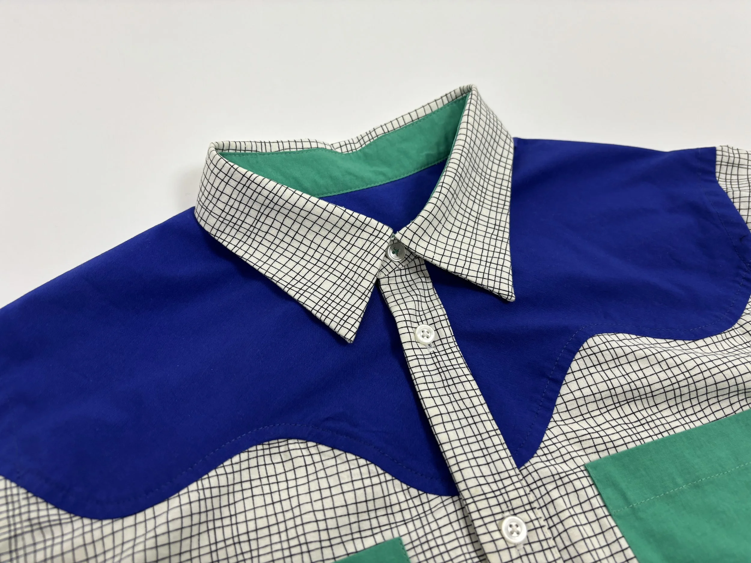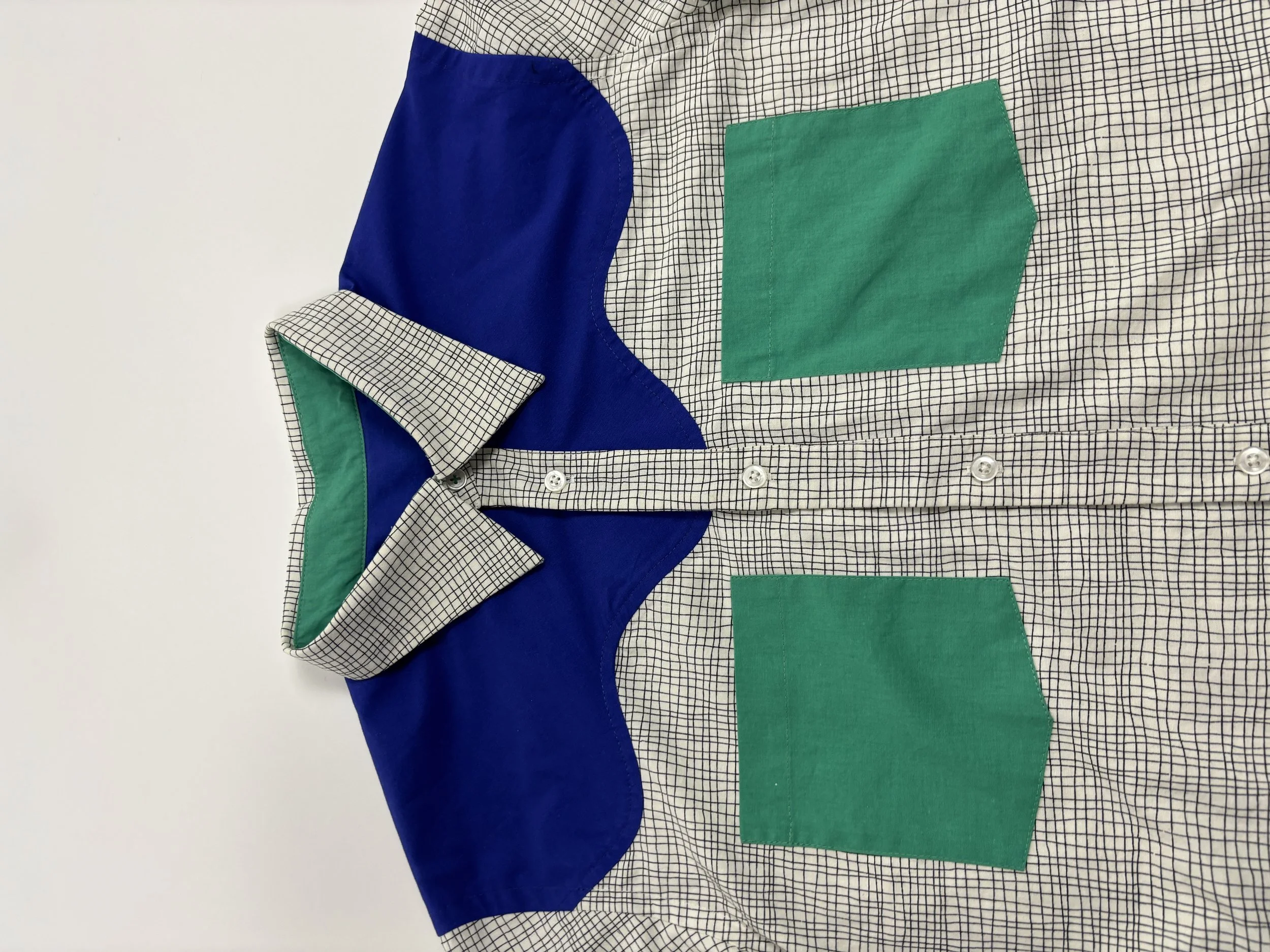This shirt was a fun exercise in color blocking. I love the western shirt style and wanted to play with patterning a curved yoke.