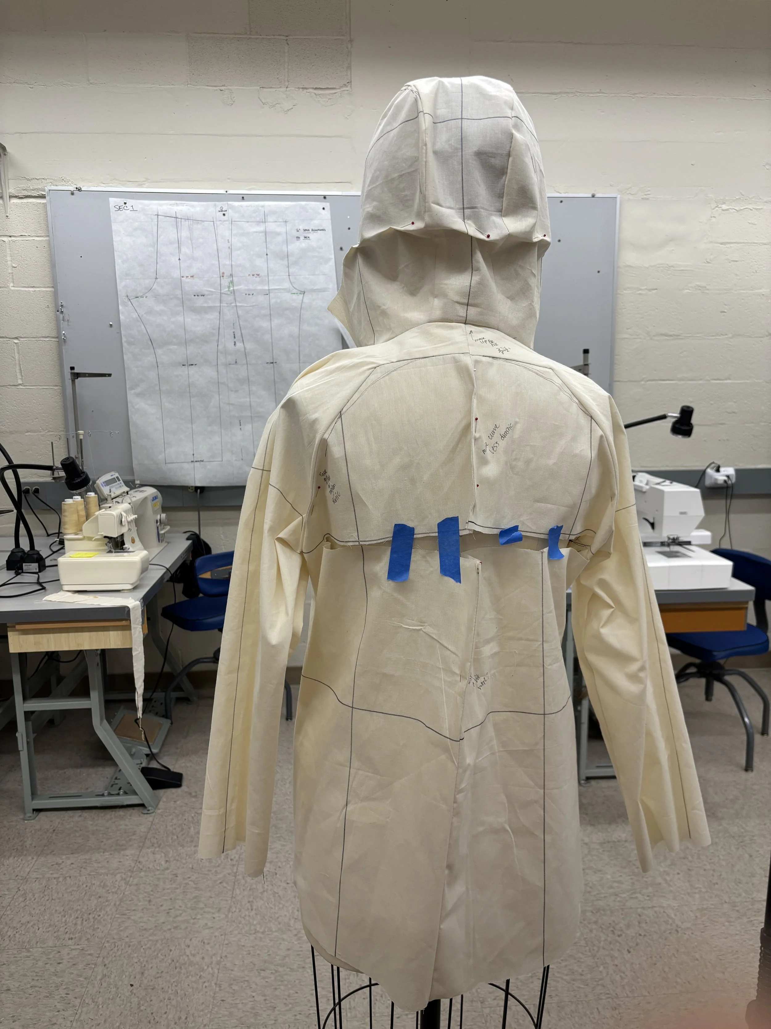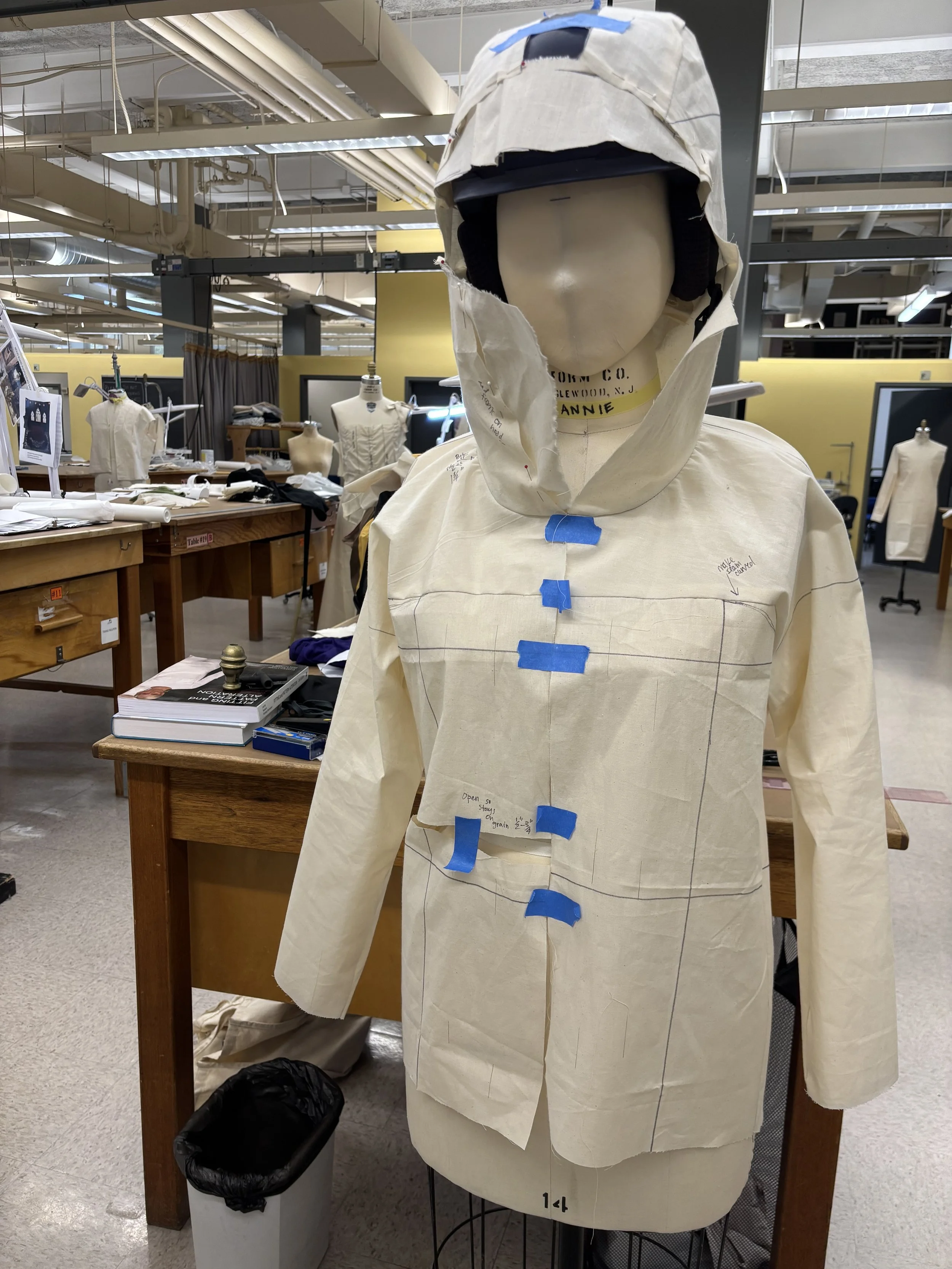Vest pattern, including quilting lines and potential pocket options. Drafted from fit model’s measurements in Optitex.